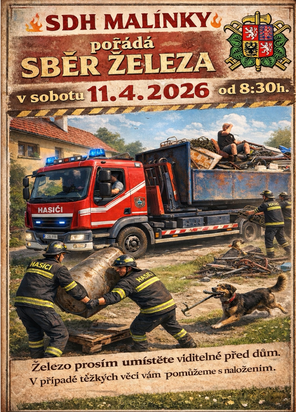 Sbor dobrovolných hasičů Malínky pořádá sběr železného šrotu v obci Malínky v sobotu dne 11.04.2026 dopoledne. Začátek sběru je od 8:30 hod..